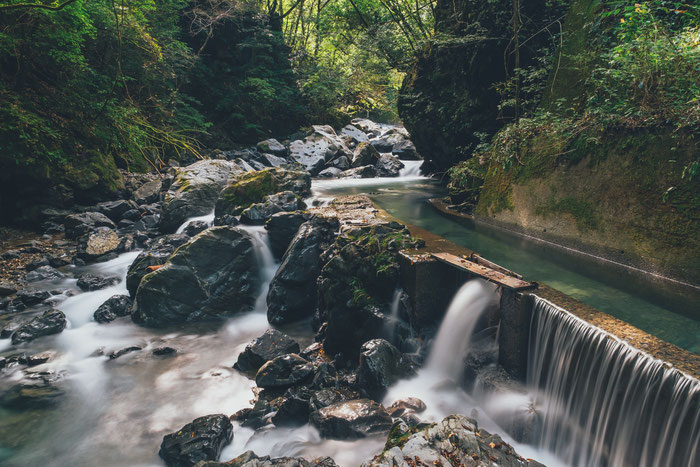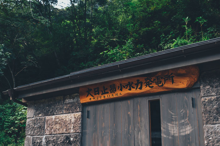 現場は、五ヶ瀬川水系が作った深い峡谷地形が特徴的な日之影町に位置する。明治時代に集落住民の元手によって作られた農業用水を、農業用水利は継続しつつ、小水力発電という現代の地域の要請としても活用するチャレンジングな事業。補助金は入っておらず、地元の大人(おおひと)用水組合を母体とした「大人発電専門農協」の出資による事業である。収益は用水路を含む地域の環境維持保全や地域振興に使われる。一連の小水力発電構造物の中で、水車と制御盤を格納するメインの小屋を設計した。
