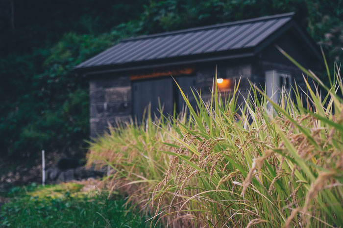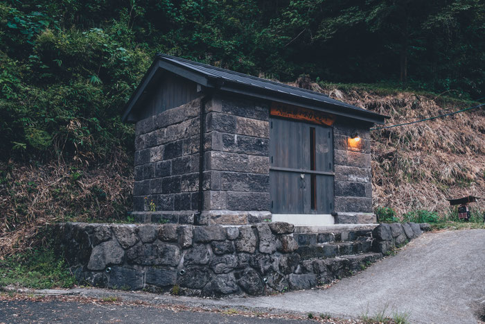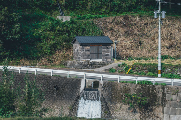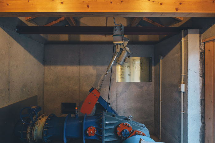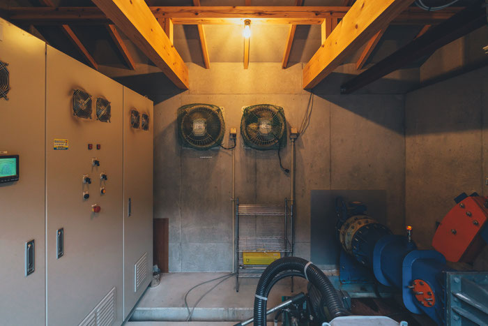 小屋の位置は、敷地に隣接する田圃に影響を与えないように、また、背後の急斜面から降りてくる水道管を受け止められる範囲で注意深く位置、角度が設定された。基盤の石積みは既存の野面積みが連続するように新たに建設した。地域に残る石蔵のスケール感覚を守ることを重視し、できるだけ多くの発電機器を小屋内に収める検討を繰り返し、外に出して問題ない機器で、入りきらないものは外に出した。また近隣への騒音がないよう吸音や音漏れのない設計を徹底した。そして事業が永い未来に渡り継続されるよう、強固な設計を目指した。